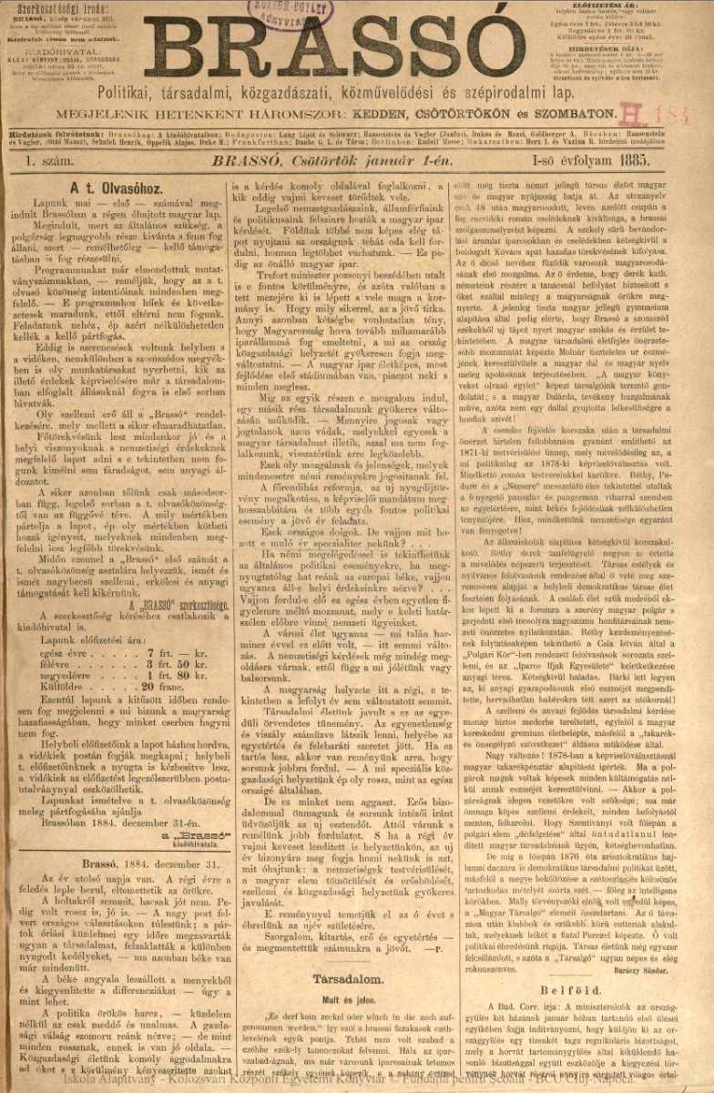 Brassóban heti háromszor megjelenő politikai, társadalmi, közgazdasági, közművelődési és szépirodalmi lap. Mérete: 36×30, illetve 46×31 cm. Felelős szerkesztők: Szterényi József, Harmath Lajos, Vajna Gábor, Rozsondai János. Szerkesztők: Horváth László, Gyöngyössi István, Walther Béla. Nyomtatták Teochar Alexi és Vilmos Grünfeld nyomdájában. Utolsó lapszáma 1894. december 29-én jelent meg, amikor is egyesült az akkor még csak egy éve megjelenő Brassói Magyar Ujsággal, és együtt létrehozták a Brassói Lapokat.