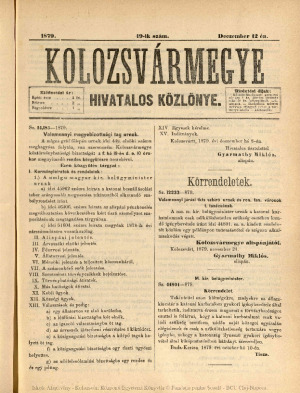 Kolozsvármegye Hivatalos Közlönye