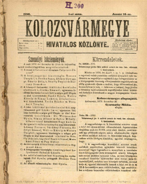 Kolozsvármegye Hivatalos Közlönye
