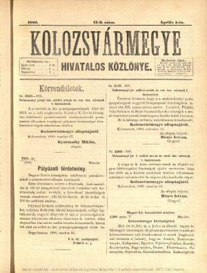 Kolozsvármegye Hivatalos Közlönye