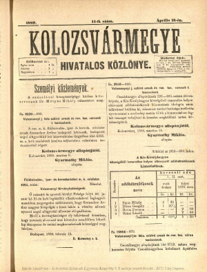 Kolozsvármegye Hivatalos Közlönye