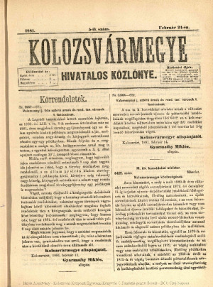Kolozsvármegye Hivatalos Közlönye