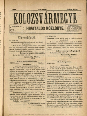 Kolozsvármegye Hivatalos Közlönye