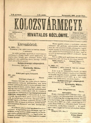 Kolozsvármegye Hivatalos Közlönye