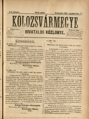 Kolozsvármegye Hivatalos Közlönye