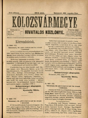 Kolozsvármegye Hivatalos Közlönye