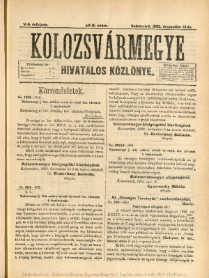 Kolozsvármegye Hivatalos Közlönye