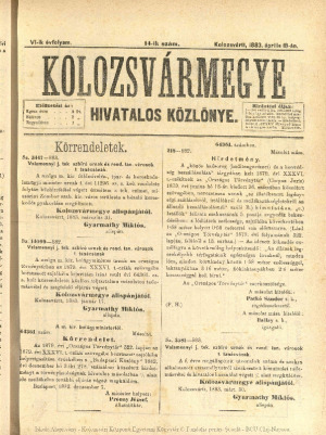 Kolozsvármegye Hivatalos Közlönye