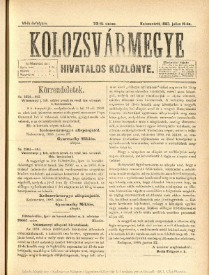 Kolozsvármegye Hivatalos Közlönye