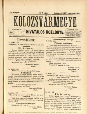 Kolozsvármegye Hivatalos Közlönye