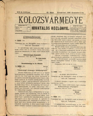 Kolozsvármegye Hivatalos Közlönye