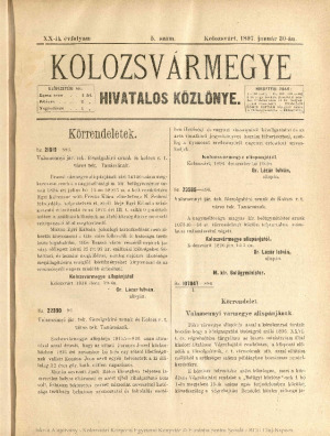 Kolozsvármegye Hivatalos Közlönye