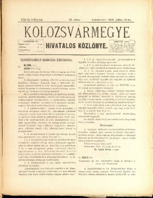 Kolozsvármegye Hivatalos Közlönye