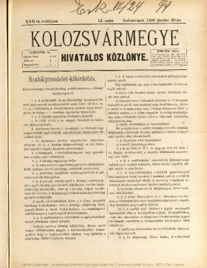 Kolozsvármegye Hivatalos Közlönye
