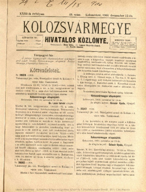 Kolozsvármegye Hivatalos Közlönye