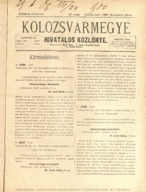 Kolozsvármegye Hivatalos Közlönye