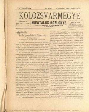 Kolozsvármegye Hivatalos Közlönye