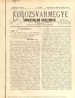 Kolozsvármegye Hivatalos Közlönye