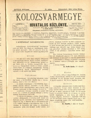 Kolozsvármegye Hivatalos Közlönye