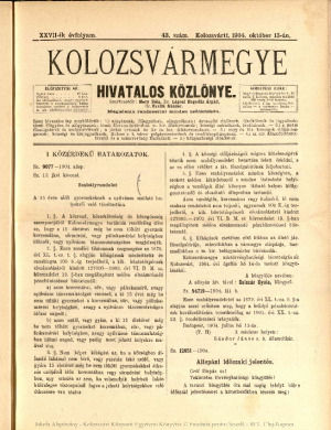 Kolozsvármegye Hivatalos Közlönye