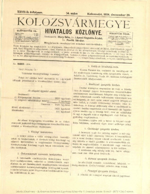 Kolozsvármegye Hivatalos Közlönye