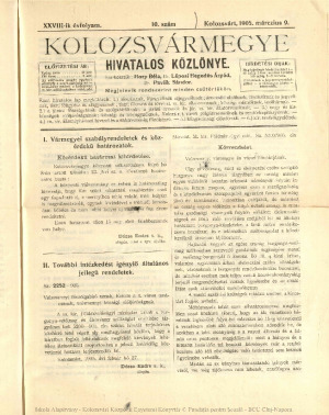 Kolozsvármegye Hivatalos Közlönye