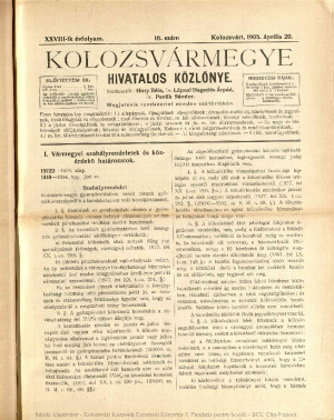Kolozsvármegye Hivatalos Közlönye