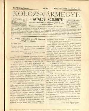 Kolozsvármegye Hivatalos Közlönye