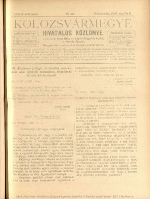 Kolozsvármegye Hivatalos Közlönye