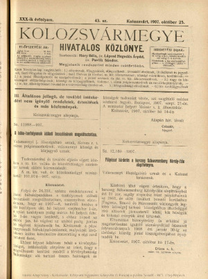 Kolozsvármegye Hivatalos Közlönye