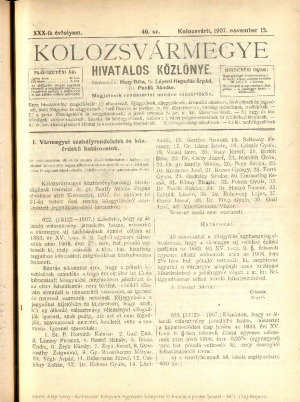Kolozsvármegye Hivatalos Közlönye