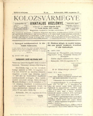 Kolozsvármegye Hivatalos Közlönye