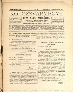 Kolozsvármegye Hivatalos Közlönye