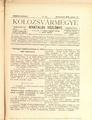Kolozsvármegye Hivatalos Közlönye