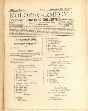 Kolozsvármegye Hivatalos Közlönye