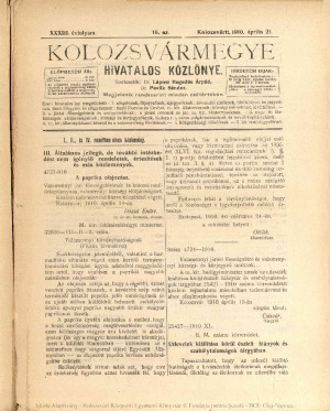 Kolozsvármegye Hivatalos Közlönye
