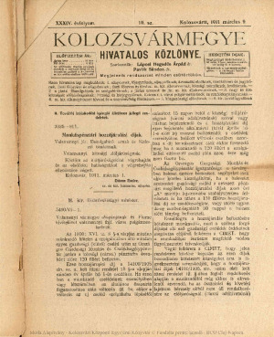 Kolozsvármegye Hivatalos Közlönye