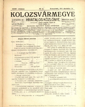 Kolozsvármegye Hivatalos Közlönye
