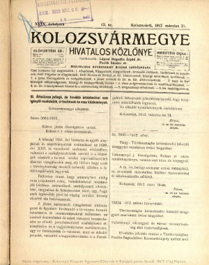Kolozsvármegye Hivatalos Közlönye