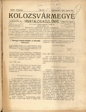 Kolozsvármegye Hivatalos Közlönye