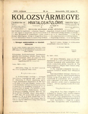 Kolozsvármegye Hivatalos Közlönye