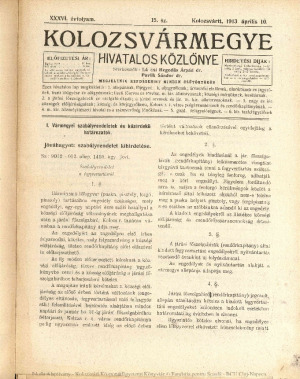 Kolozsvármegye Hivatalos Közlönye