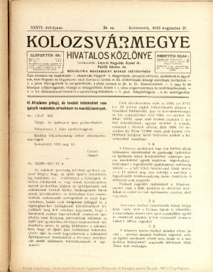 Kolozsvármegye Hivatalos Közlönye