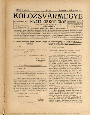 Kolozsvármegye Hivatalos Közlönye