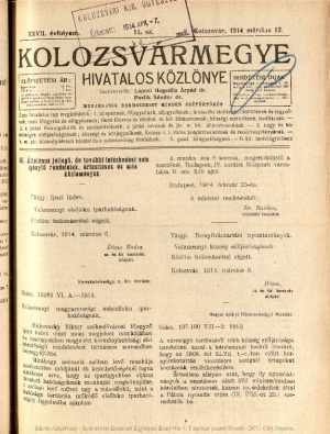 Kolozsvármegye Hivatalos Közlönye