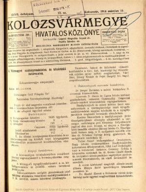 Kolozsvármegye Hivatalos Közlönye
