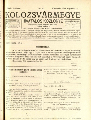 Kolozsvármegye Hivatalos Közlönye