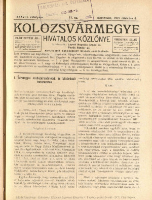 Kolozsvármegye Hivatalos Közlönye