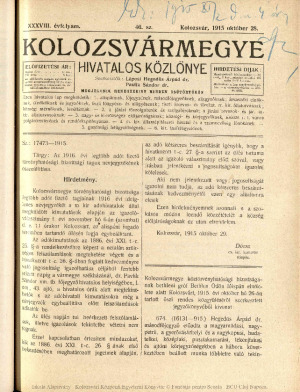 Kolozsvármegye Hivatalos Közlönye