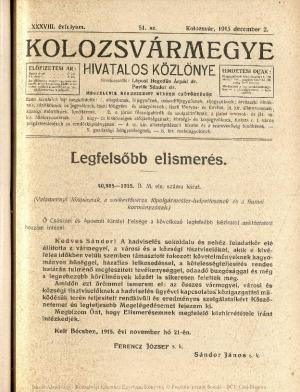 Kolozsvármegye Hivatalos Közlönye